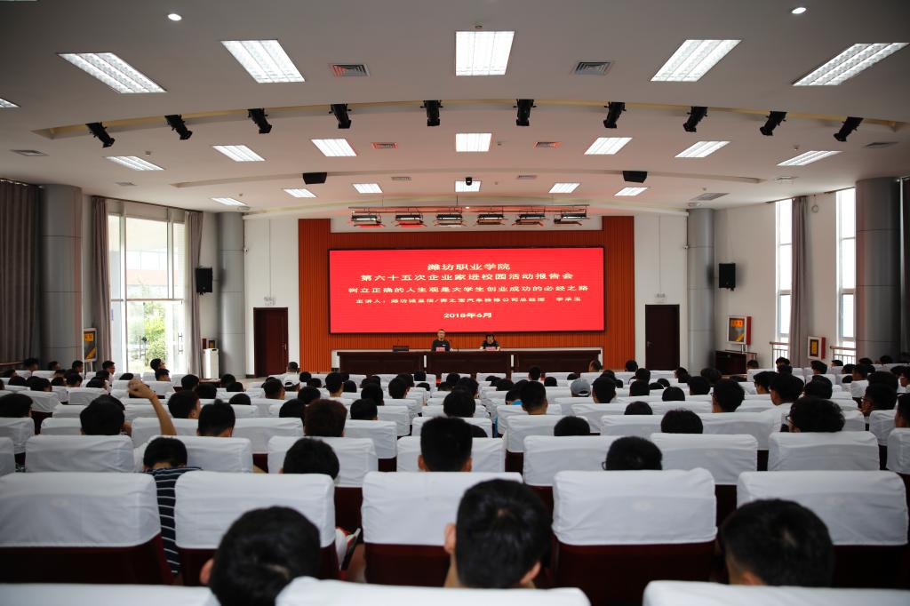 6月19日下午,学院第六十五次“企业家进校园”活动报告会在清泽楼报告厅举行。潍坊诚至信/奔之宝汽车检修公司总经理李承玉作了题为“树立正确的人生观是大学生创业成功的必经之路”的报告。科技处(产学研合作中心)、汽车工程学院师生代表300余人参加了报告会。