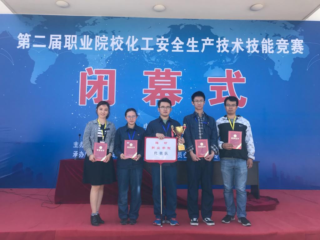 5月22日至5月24日,由全国安全职业教育教学指导委员会、中国化学品安全协会主办,全国安全职业教育教学指导委员会化工安全专业分委员会承办,华北科技学院、秦皇岛博赫科技开发有限公司协办的2018年全国职业院校化工安全生产技术技能竞赛在秦皇岛博赫科技园举办。此次大赛共有45支代表队135名选手参加,MG冰球突破官网化学工程学院参赛学生胡恩政、陈彦霖和宋梦圆获得团体二等奖,获得B赛项全国第三名,两名教师获优秀指导教师称号。