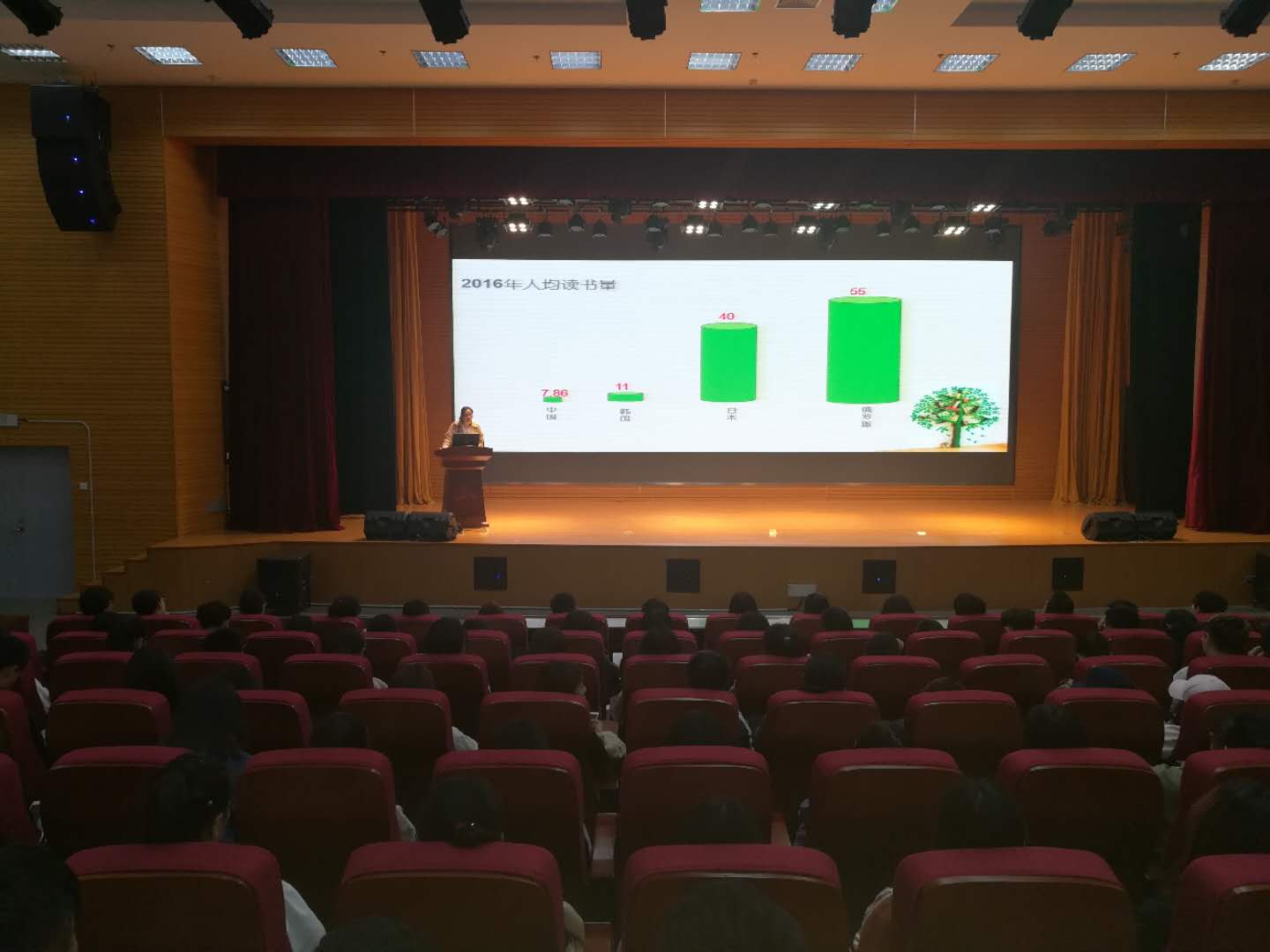 报告从我国人均图书阅读量的不足引出阅读的重要性和紧迫性,指出读书的意义是为知,“若有诗书藏在心,颉来芳华成至真”,读书是为己,“粗缯大布裹生涯,腹有诗书气自华”,读书是为人,“它关系一个民族的素质和力量,影响一个国家的前途和命运”;通过分析京东大数据报告,总结出选书标准,一要看此书有没有引导人想了又想的力量,二要看此书有没有求新的价值力量,要择书而读,取其精华,去其糟粕;介绍了定向阅读、选择阅读和巧妙阅读三种阅读方法,引导同学们利用宝贵的阅读时间读经典书、读一流书,谨慎对待网络文学,多进行思考性的深度阅读。