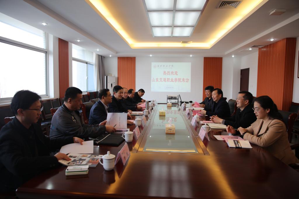 3月13日下午,山东交通职业学院副院长单志强一行8人来MG冰球突破官网考察交流。副院长贺志强在会议室会见客人。学生处、招生就业处、后勤服务处负责同志参加座谈。
