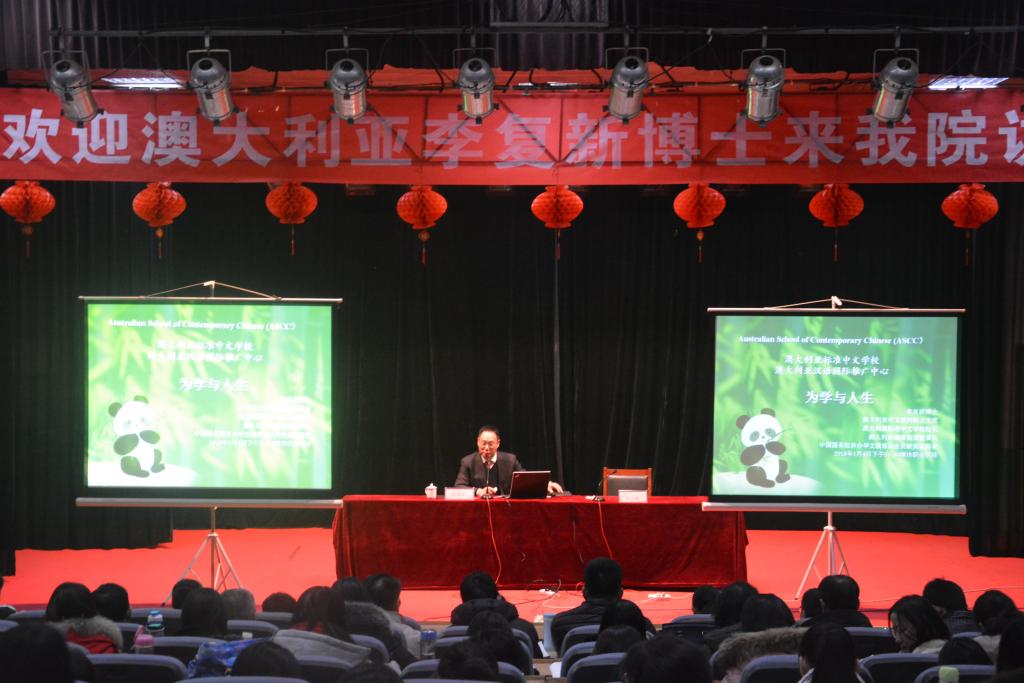 座谈会后李复新博士为国际商务学院师生分别作了“澳大利亚汉语教学的现状与合作前景”、“为学与人生”学术报告。
