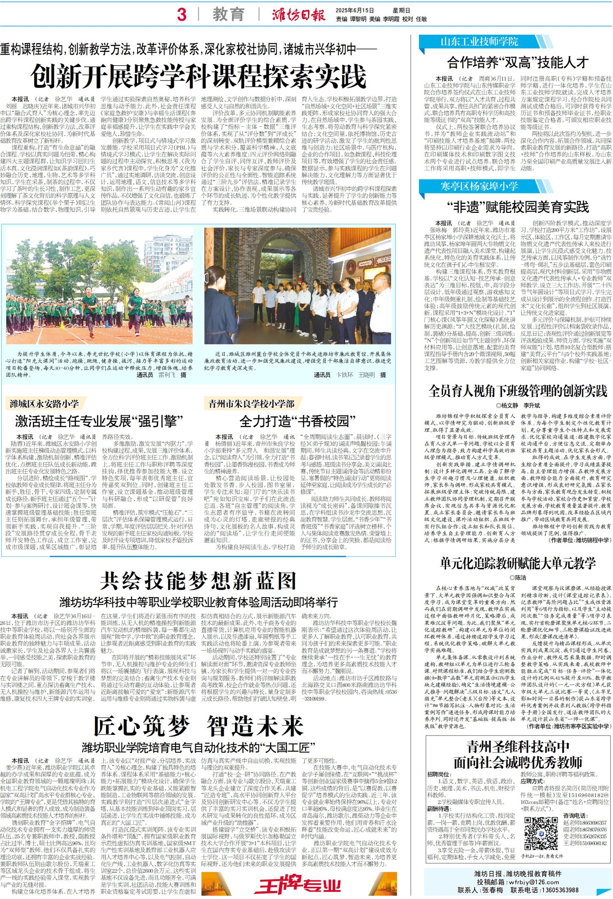 [潍坊日报] 匠心筑梦 智造未来 MG冰球突破官网培育电气自动化技术的“大国工匠”