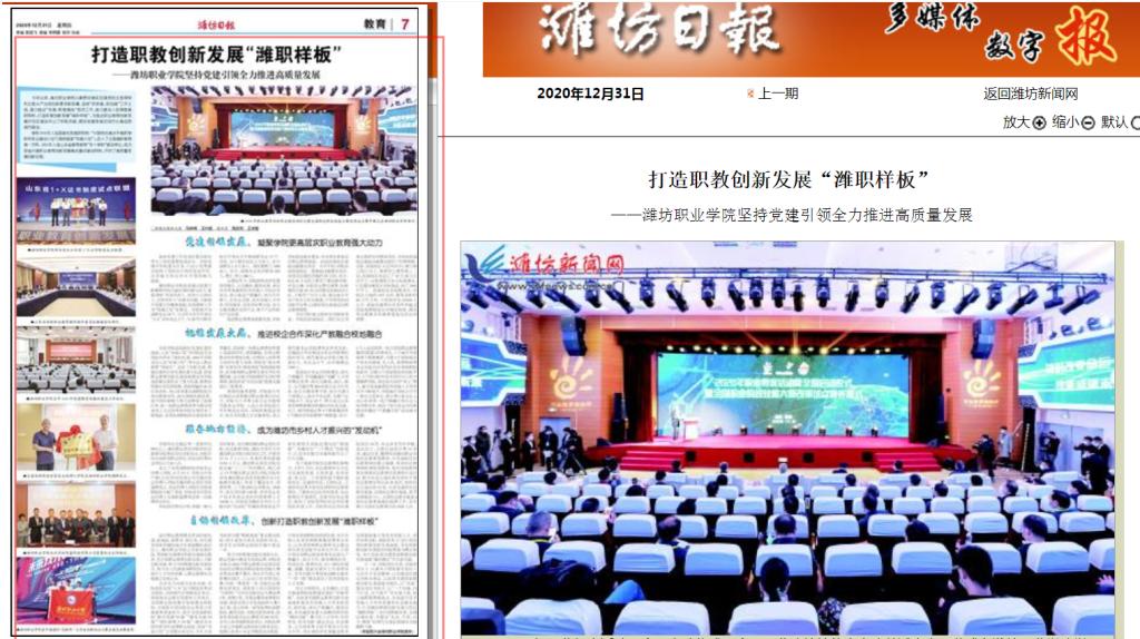 [潍坊日报]打造职教创新发展“潍职样板”——MG冰球突破官网坚持党建引领全力推进高质量发展