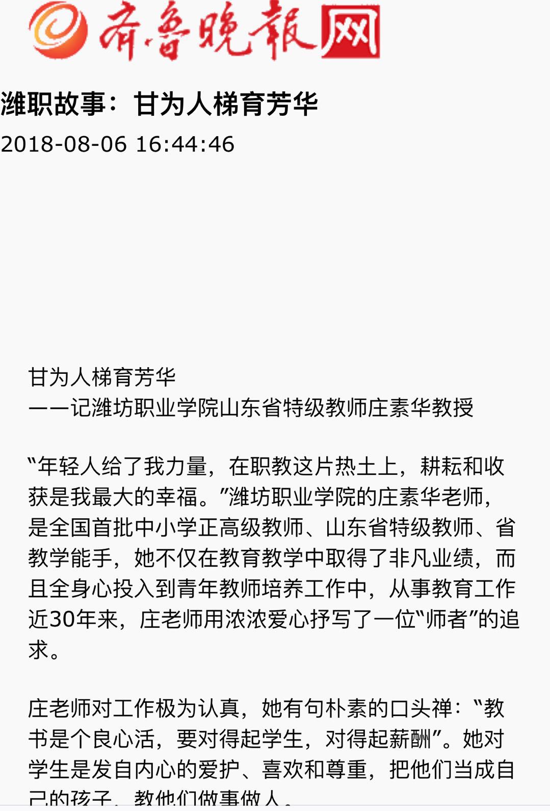 [齐鲁晚报]甘为人梯育芳华——记MG冰球突破官网山东省特级教师庄素华教授