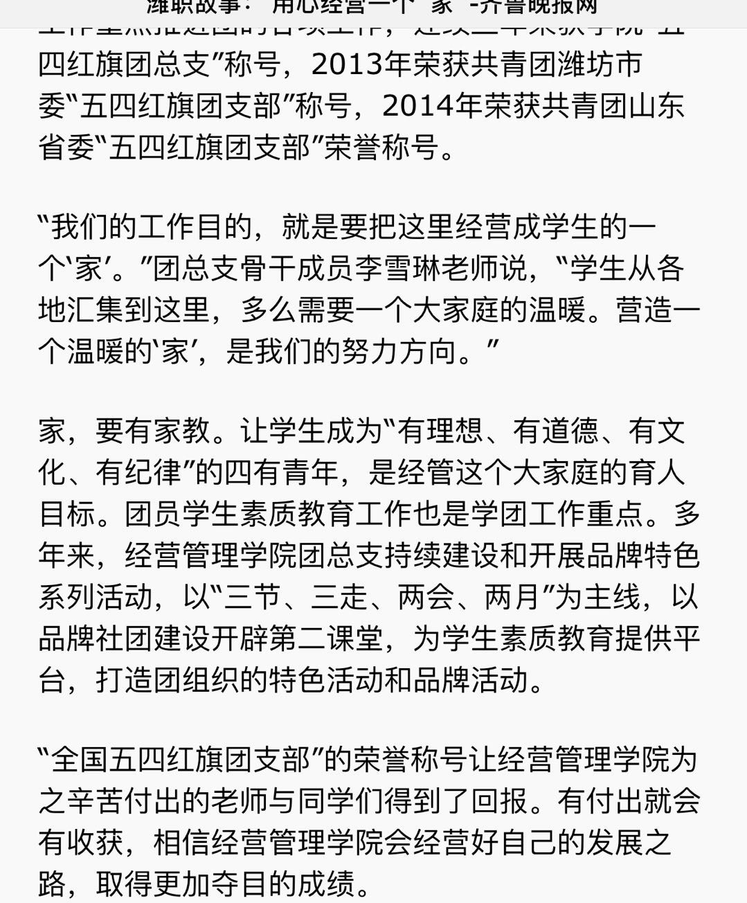 [齐鲁晚报]潍职故事:用心经营一个家