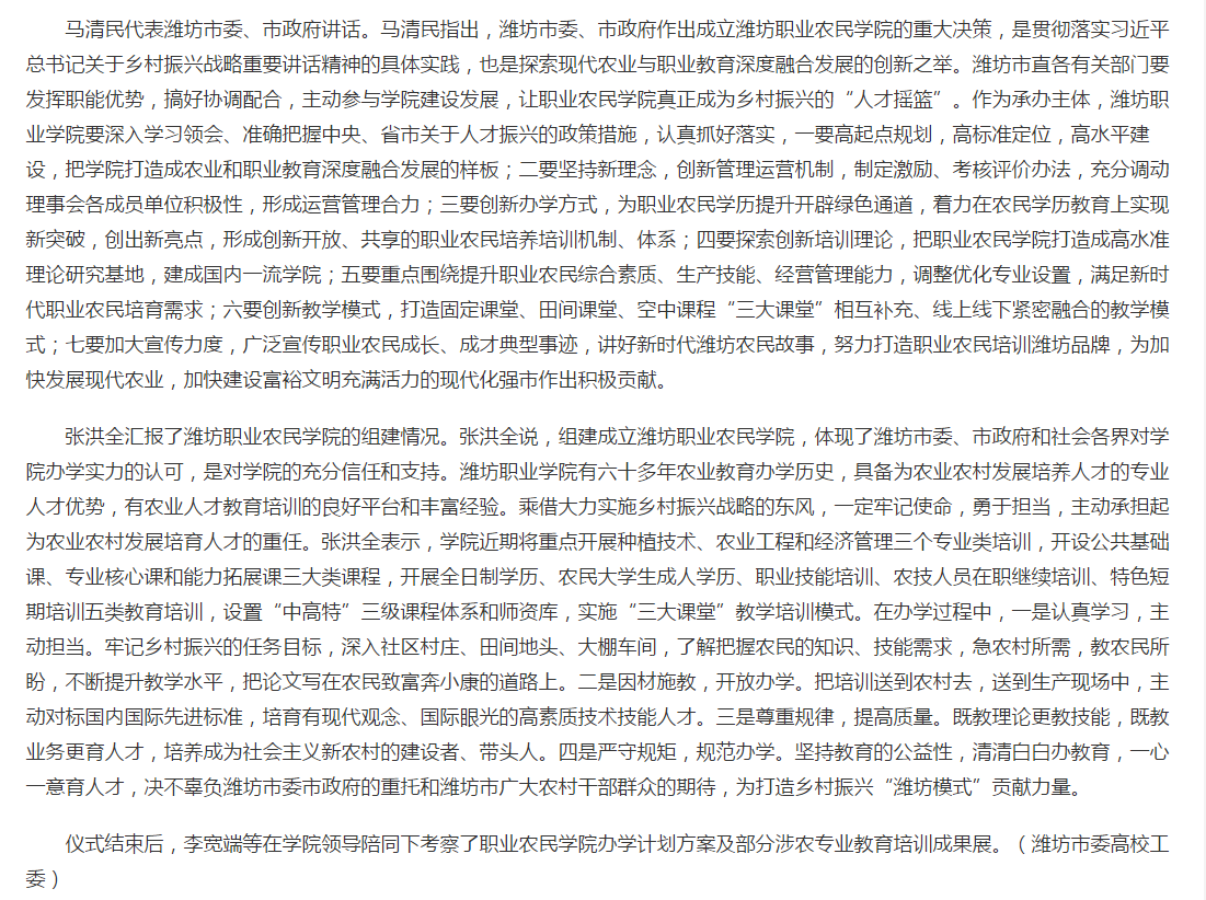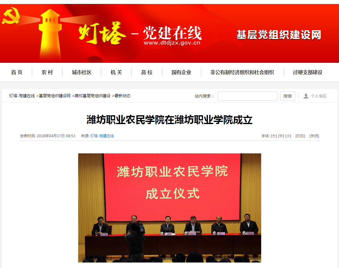 [灯塔—党建在线]潍坊职业农民学院在MG冰球突破官网成立