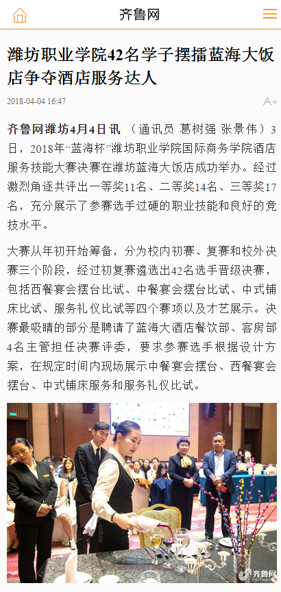 [齐鲁网]MG冰球突破官网42名学子摆擂蓝海大饭店争夺酒店服务达人