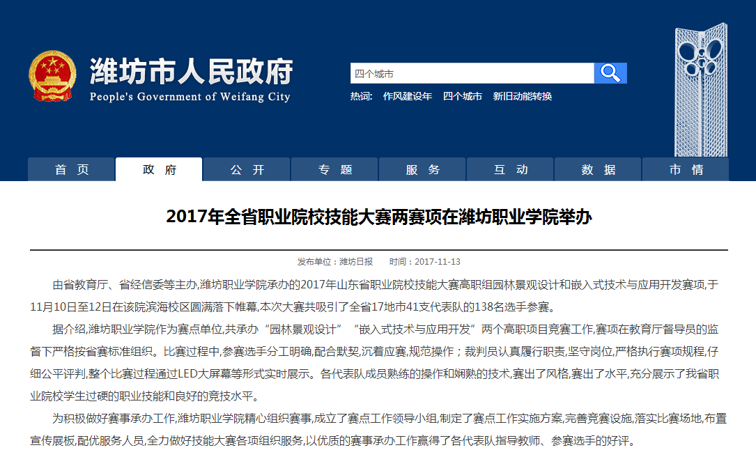 潍坊市人民政府网站: 2017年全省职业院校技能大赛两赛项在MG冰球突破官网举办