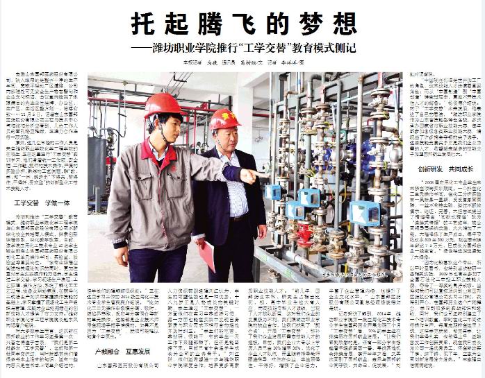 为顺利推进“工学交替”教育模式,MG冰球突破官网化学工程学院与山东国邦医药股份有限公司不断深化校企共培育人模式,探索创新课程体系,深化教学改革,目前,该学院应用化工技术专业40名同学被安排在山东国邦医药股份有限公司化工单元操作车间、实验室、质检室等重要岗位。“该专业课程在阐述相关理论知识的同时,更加注重对学生实践操作能力培养,学生通过工学交替,学习现场生产流程、工艺原理、操作方法,系统了解化工工艺过程、设备及职场氛围,在获得化工现场生产知识和掌握操作技能的基础上,学习掌握了现场化工生产组织与管理,无疑为企业挖掘潜在的创新技能人才提供了有力支持。”MG冰球突破官网化学工程学院院长赵东风向记者介绍说。