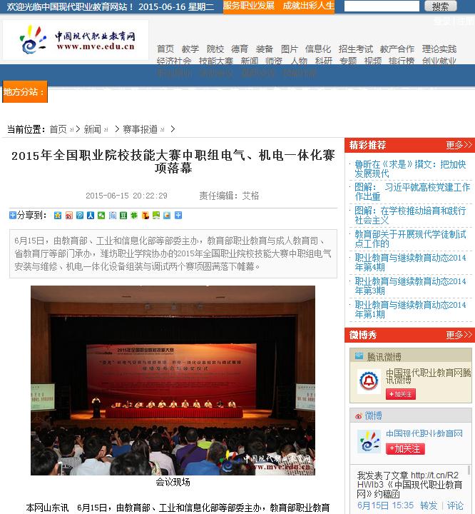 [中国现代职业教育网]2015年全国职业院校技能大赛中职组电气、机电一体化赛项落幕