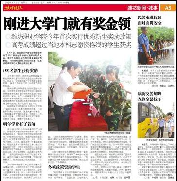 媒体潍职:[潍坊晚报]刚进大学门就有奖金领