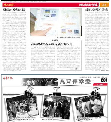 9月2日,MG冰球突破官网4000余名2012级新生报到入学。潍坊晚报、齐鲁晚报等媒体对此作了报道。