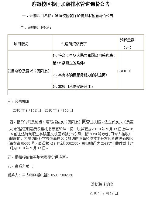 滨海校区餐厅加装排水管道询价公告