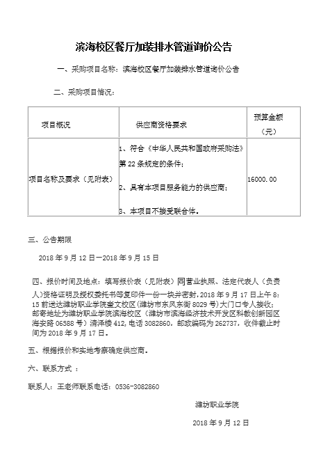 滨海校区餐厅加装排水管道询价公告