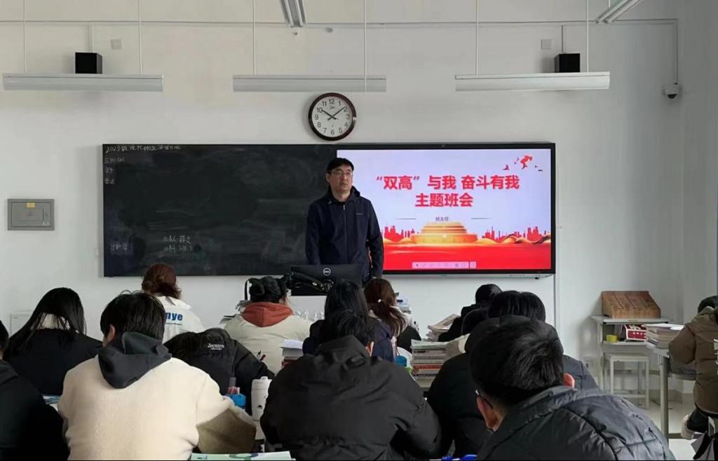 三是人人参与,筑牢“同心圆”。各班级开展“‘双高’与我 奋斗有我”主题班会,宣传学院“双高计划”建设工作,唤起全体学生对学院发展的关注和认同。紧扣“双高”主题,结合专业特点,通过多种形式向全体学生详细介绍了“什么是双高”“学院双高建设情况”,并组织学生对“双高能为我带来什么”以及“我能为双高做什么”等话题展开思考和讨论。