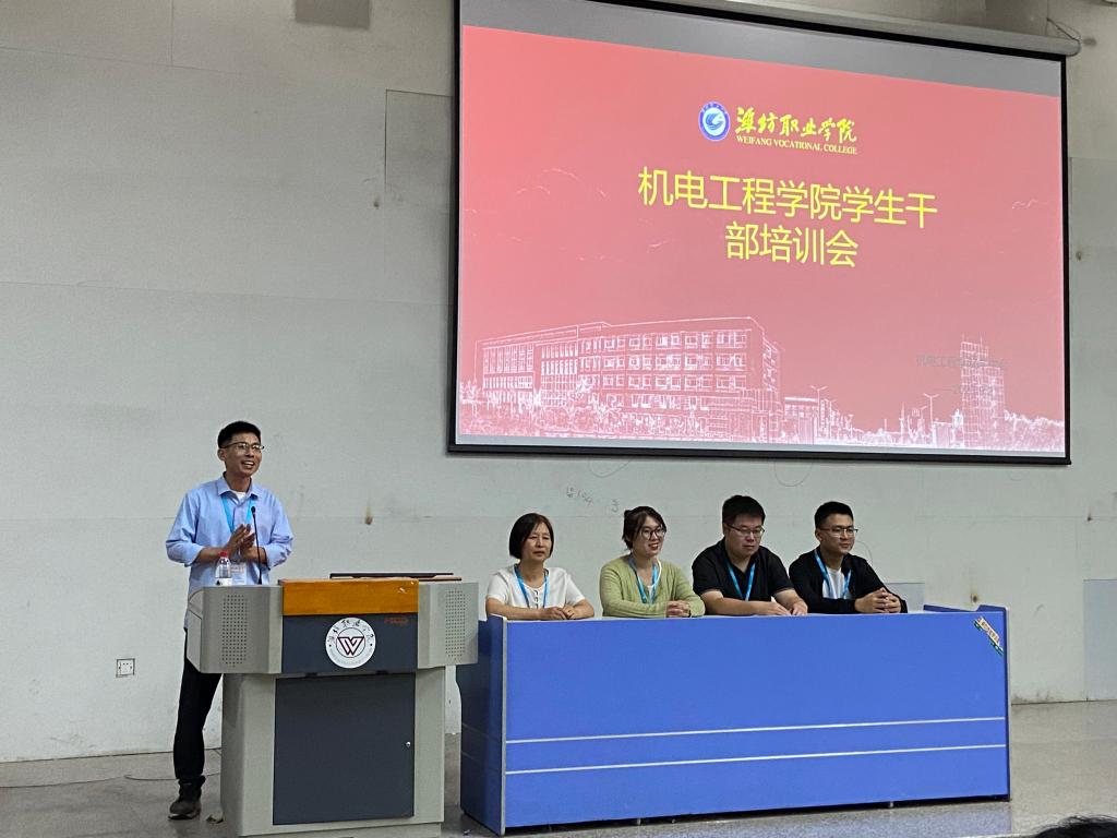 10月7日上午,机电工程学院团总支召开学生干部工作培训会。团总支负责人、全体辅导员、各班级主要学生干部等30余人参加活动。
