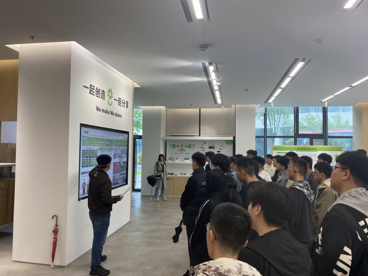在企业负责人的带领下,师生们首先参观了歌尔匠造培训中心周边地理环境,并详细讲解了公司概况、企业发展历程、“匠造专班”人才培养模式、“匠造专班”后续的教学安排,随后带领师生们参观了匠造培训中心的实训楼、教学楼、宿舍、餐厅、篮球场等场所。同学们纷纷表示通过游学参观收获颇丰,感受到了浓厚的企业文化,加深了对企业的了解,对自身今后的发展也有了更清晰的认识和定位。