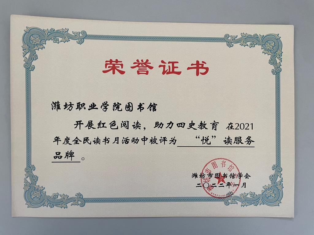 图书馆获潍坊市“2021年度全民读书月先进单位”