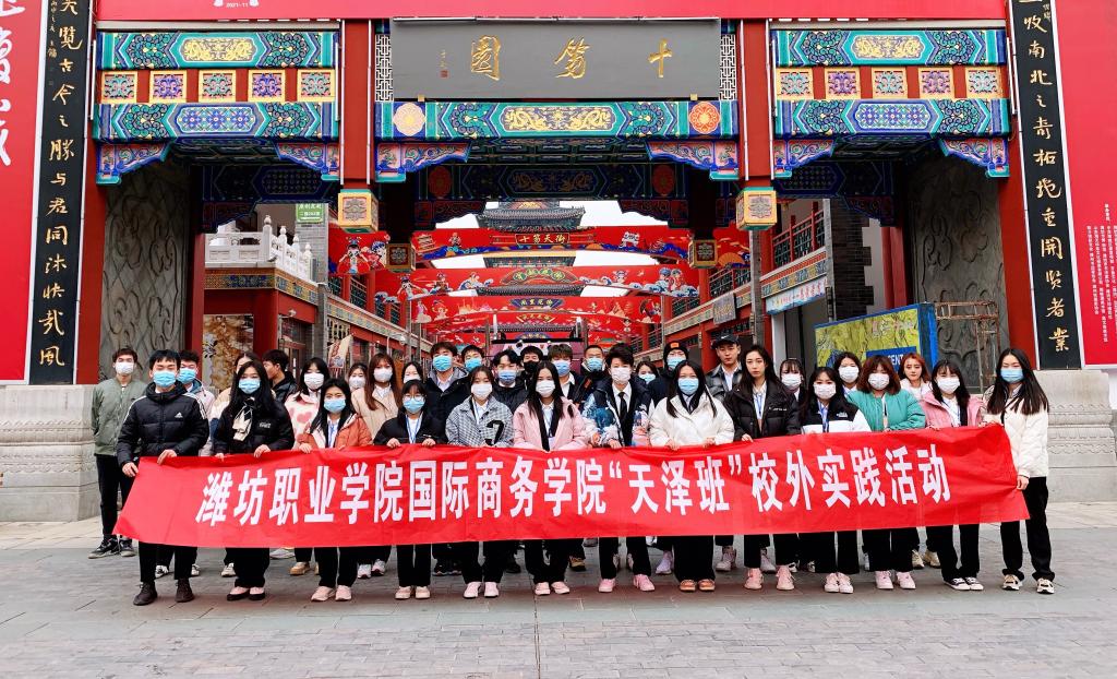 2021年12月16日,国际商务学院2021级商务管理专业校企共建“天泽班”联合“潍爱”青年志愿者协会到潍坊十笏园进行参观学习。