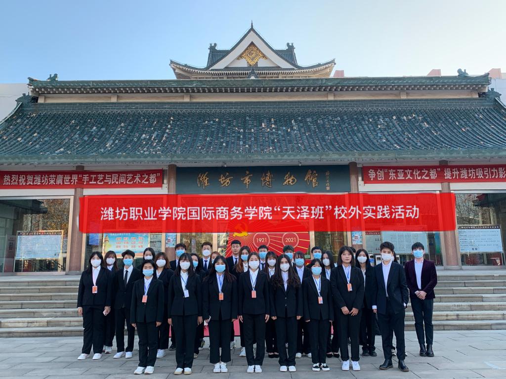 为提高学生综合素质与实践能力,国际商务学院与山东天泽教育科技集团共同举办“潍职·潍爱·潍才”第二课堂系列活动。本次博物馆实践活动是系列活动的第一站,以后校企双方还将举行一系列此类校外实践活动,让同学们增加知识,开阔视野,丰富阅历,让各地同学了解潍坊,加深同学们对潍坊的感情。(黄龙雯供稿)