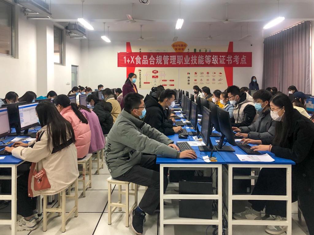 为贯彻落实教育部办公厅等多部门《关于推进1+X证书制度试点工作的指导意见》,积极推进1+X食品合规管理职业技能等级证书试点,11月28日,食品药品学院顺利完成1+X食品合规管理职业技能等级证书(中级)考核,来自2020级食品智能加工技术、食品检验检测技术和食品质量与安全专业的90名学生参加了考核。