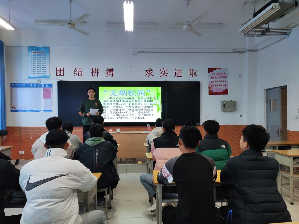 为进一步强化学生文明行为规范,提升学生禁烟控烟意识,营造健康安全积极向上的学习氛围,全面构建精神文明校园。11月21日,机电工程学院组织全体在校学生开展“无烟校园,健康相伴”主题团日活动。