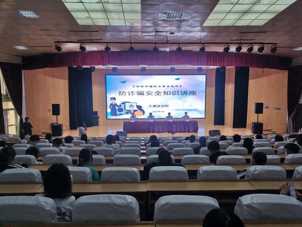 为了提高新生安全防范意识,杜绝校园诈骗情况发生,学院邀请大虞派出所民警对新生开展“防诈骗安全知识”讲座,他们通过案例介绍、常见诈骗手段、如何预防诈骗等方面对新生进行安全教育,提高新生防范意识。