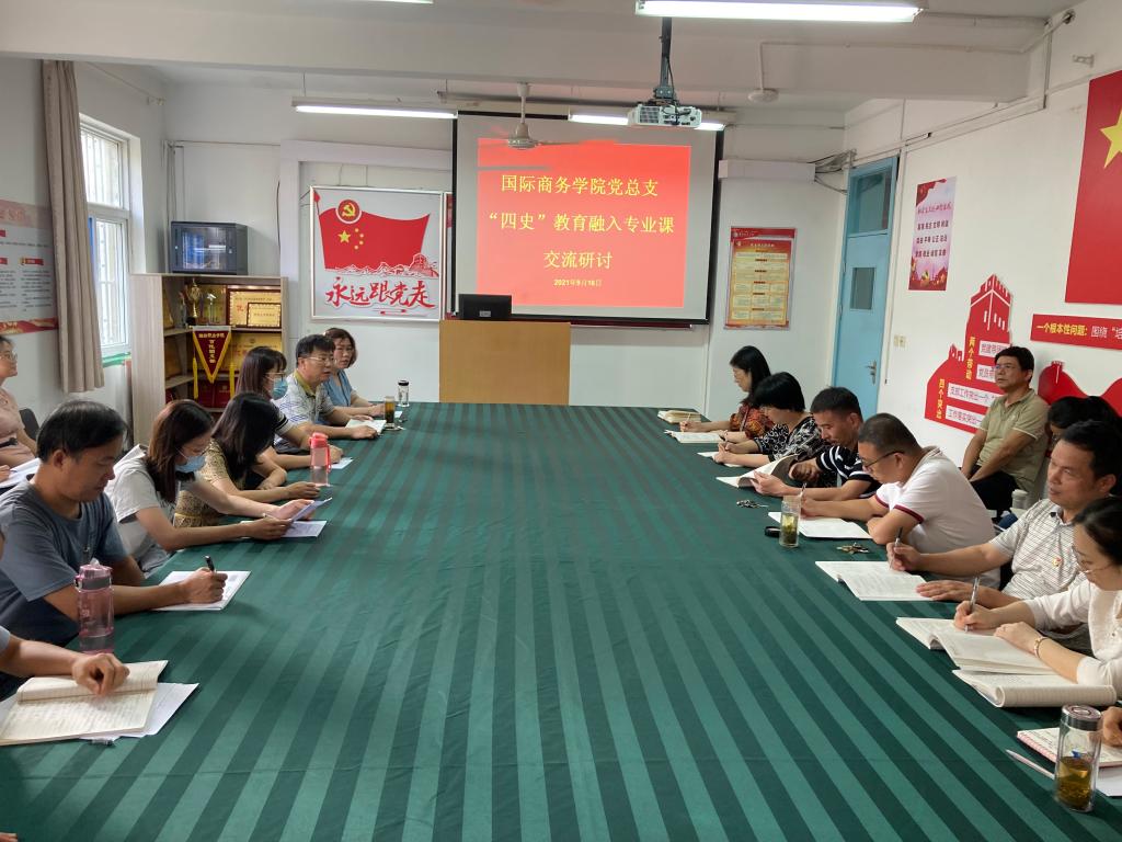 为深入学习贯彻习近平总书记在党史学习教育动员大会、庆祝中国共产党成立100周年大会上的重要讲话精神,强化以党史学习教育为重点的“四史”教育,促进“四史”教育与教学工作深度融合,近日,国际商务学院党总支组织全体党员开展了将“四史”教育融入专业课的主题党日活动。