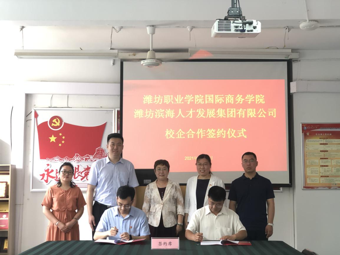 6月30日下午,国际商务学院与潍坊滨海人才发展集团有限公司举行了校企合作签约仪式。国际商务学院负责人及相关教师,潍坊滨海人才发展集团有限公司副总经理马彬、市场运营部经理王瑞参加了仪式。