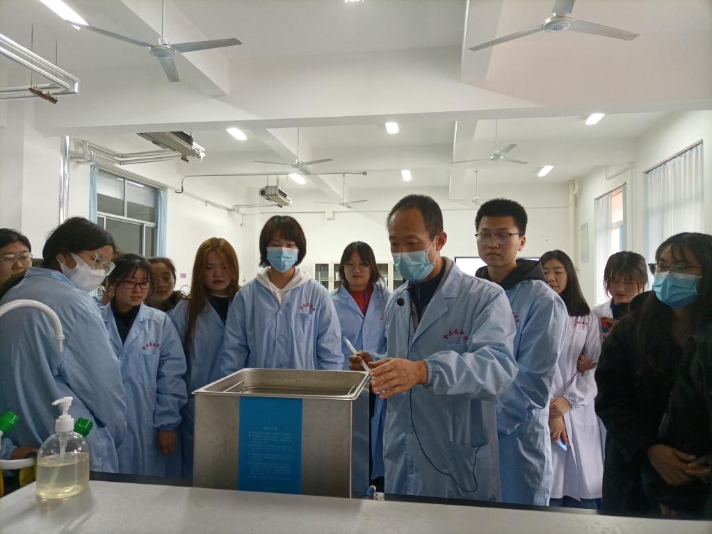 活动中,食品药品学院社团指导教师通过实践教学法为同学们展示水质质量检测项目的测定,并介绍水资源对生态建设的重要影响。指导教师详细讲解了部分常见仪器在水质质量检测中的用途,同学们对自己感兴趣的地方与指导教师进行沟通,同学们积极参与、情绪高涨。