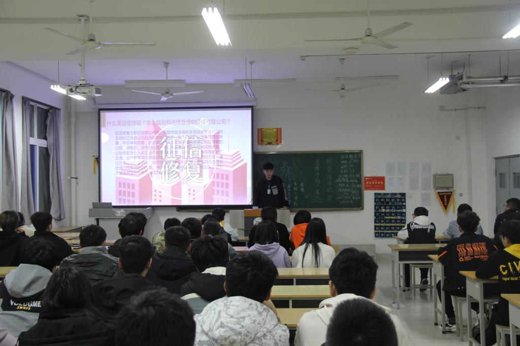 班会上,各班级从诚信教育切入,通过深入浅出地讲解什么是征信、信用报告是什么、什么是不良记录和产生不良记录会对自己造成什么影响、应该如何避免出现不良记录、如何保护个人身份信息安全等知识,向同学普及征信知识,教导学生要树立正确的理财观,倡导合理消费和适度消费的理念,切莫产生攀比心理,能辨别并主动抵制网络“校园贷”、“套路贷”。除此之外,各班级还利用视频和各类真实案例科普了非法“征信修复”骗局, 使学生警惕“征信修复”机构,学会采用正规合法手段维护自己的权益。
