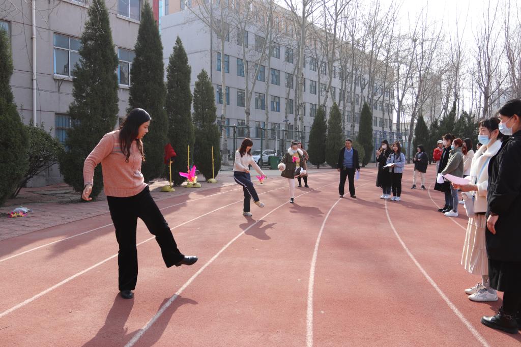 活动在奎文校区操场展开,由男教工担任裁判。活动分为100米托球跑、踢毽子、跳绳、100米两人背球跑等项目。女教职工踊跃参加,认真备赛,活动中表现出良好的竞技水平、拼搏精神和合作意识。比赛现场,欢声笑语,趣味无限,气氛热烈。