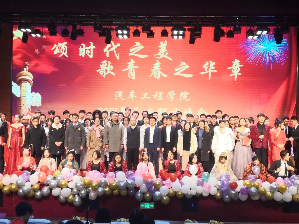 12月30日晚,汽车工程学院“颂时代之美,歌青春之华章”元旦联欢晚会在图书馆报告厅举行。相关职能部门及二级学院负责同志和汽车工程学院师生欢聚一堂,共同迎接2021年的到来。