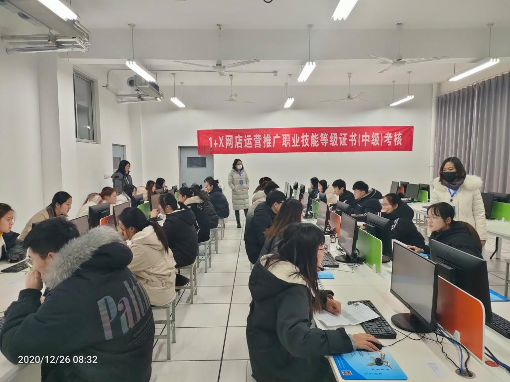 为进一步推进职业教育“1+X”证书制度试点工作,贯彻落实《国家职业教育改革实施方案》精神,推进“学历证书+职业技能等级证书”制度实施,在学院相关部门的大力支持和指导下,信息工程学院于12月26日顺利完成2020年全国1+X网店运营推广职业技能等级认证(中级)考试工作。电子商务专业30名同学参加了本次认证考试。考试共分为两场进行,分别为:基础理论考核、实操考核。学院组织人员严格按照认证考核有关要求,全程电子监控,考试组织工作有序,分工职责明确。
