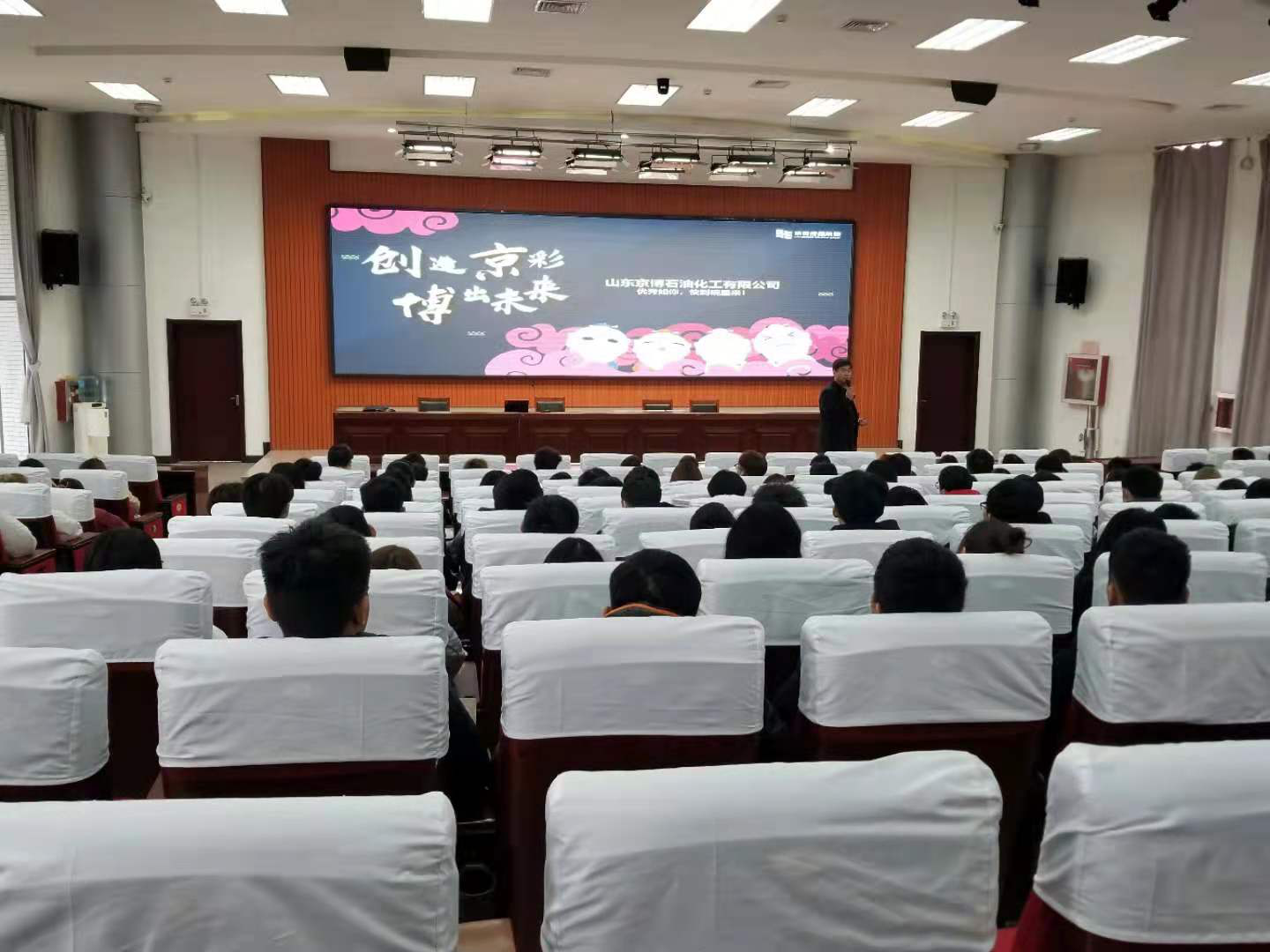 为进一步深化产教融合、校企合作, 11月26日,化学工程学院在滨海校区清泽楼报告厅举办“现代学徒制”企业文化交流会。山东京博石油化工有限公司、淄博齐翔腾达股份有限公司、山东新和成控股有限公司、山东华辰医药有限公司应邀出席,2019级全体学生及相关专业教师参加本次交流会。