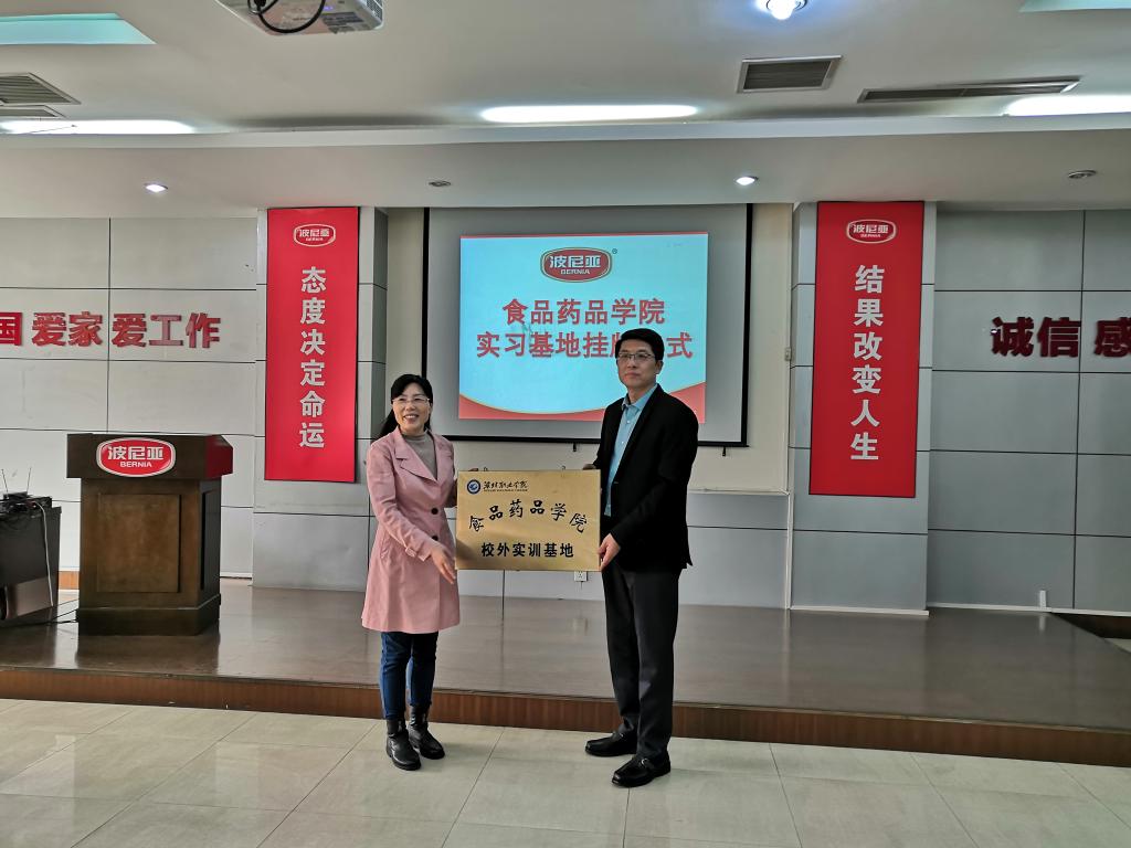 在青岛波尼亚食品有限公司,食品药品学院一行与该公司董事长赵向进、运营管理副总裁段中航、人力资源总监冯言伟以及企业顶岗实习学生代表进行了座谈交流。座谈会上,董事长赵向进对MG冰球突破官网历年在公司顶岗实习以及就职的毕业生素质表示高度的肯定,并希望与MG冰球突破官网进一步做大、做深、做强校企合作,加强联系,建立校企合作优良运转机制,共同育人、共同发展。校企双方围绕食品营养与检测专业现代学徒制试点班企业承担课程项目、授课教师、授课方式、师傅选拔要求及拜师仪式、学生企业实训安排等细节问题进行了协商讨论,并最终达成了一致意见。座谈会后,校企双方共同参加了食品药品学院校外实训基地挂牌仪式,并颁发企业奖学金。