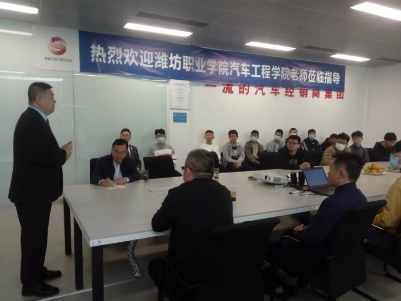 10月19日,汽车工程学院检修专业现代学徒制班在山东顺骋汽车集团举行开训仪式。汽车工程学院分管副院长及新能源汽车技术、产学合作办公室的老师,山东顺聘汽车集团奥迪店总经理及集团人力资源培训师,汽车检修专业现代学徒制班的34名学生参加了工学交替开训仪式。