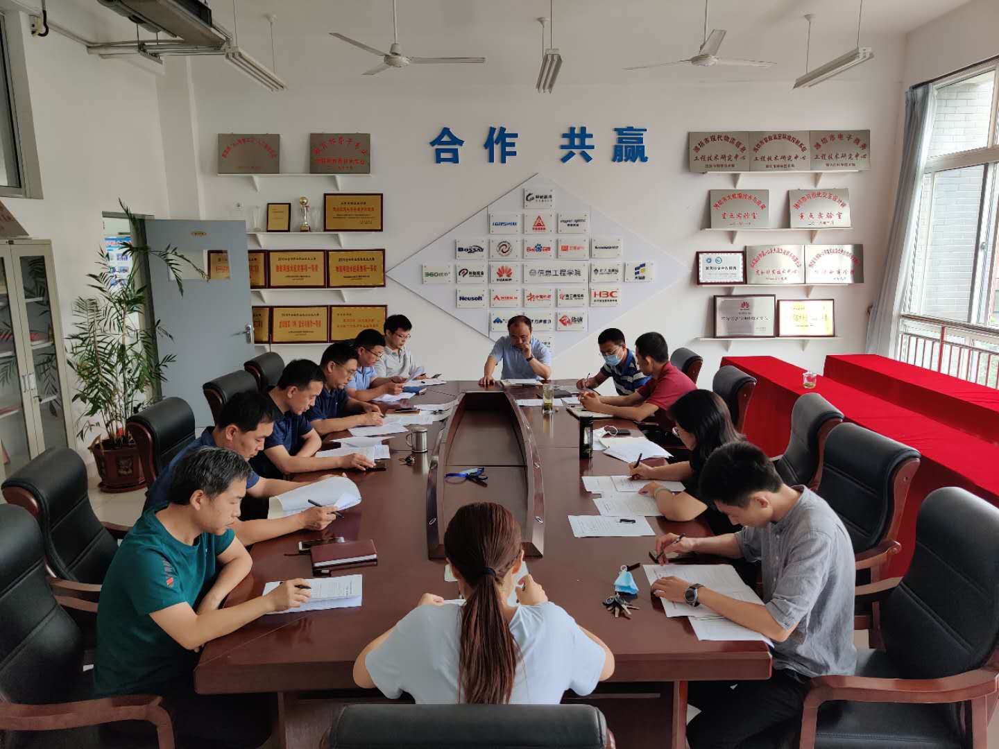 信息工程学院组织骨干教师在惠泽2号楼B410会议室共同学习两个方案,并以物联网应用技术专业为典型,对照《山东省高等职业院校专业(群)发展水平考核方案》的考核指标进行自评打分和自我剖析;随后,专业中心主任就各自专业围绕考核方案如何发展提升做了交流发言;最后,信息工程学院负责同志要求各中心对照专业(群)发展水平考核指标进行专业自评打分,查找差距,找准工作发力点,制定出具体行动计划。
