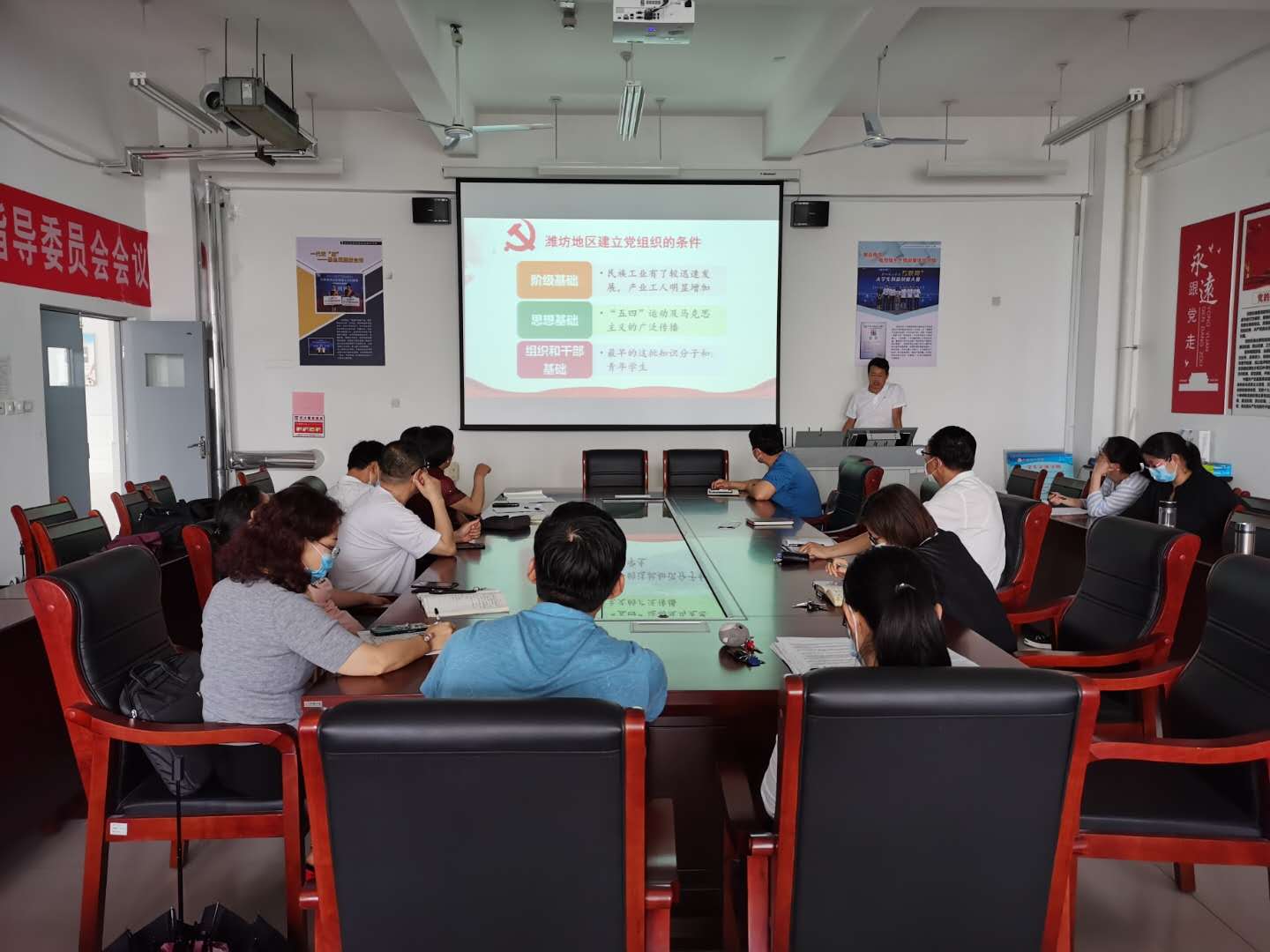 本次开展的“四史”党课讲授活动标题为《道路曲折历程光荣——潍坊新民主主义革命史》,由化学工程学院党总支书记主讲,他从潍坊地区创建党组织的时代背景;潍坊地区党组织的创立与曲折发展;学习潍坊党史的经验启示三个方面进行了讲解,课件采用生动的图片、文字,用一个个历史瞬间,全面展现了这一时期潍坊地方共产党组织不屈不挠、浴血拼搏的革命历史,讲述了新民主主义时期潍坊地区共产党组织的建立、发展、壮大,系统反映了潍坊地区人民在中国共产党的领导下所走过的光辉历程。