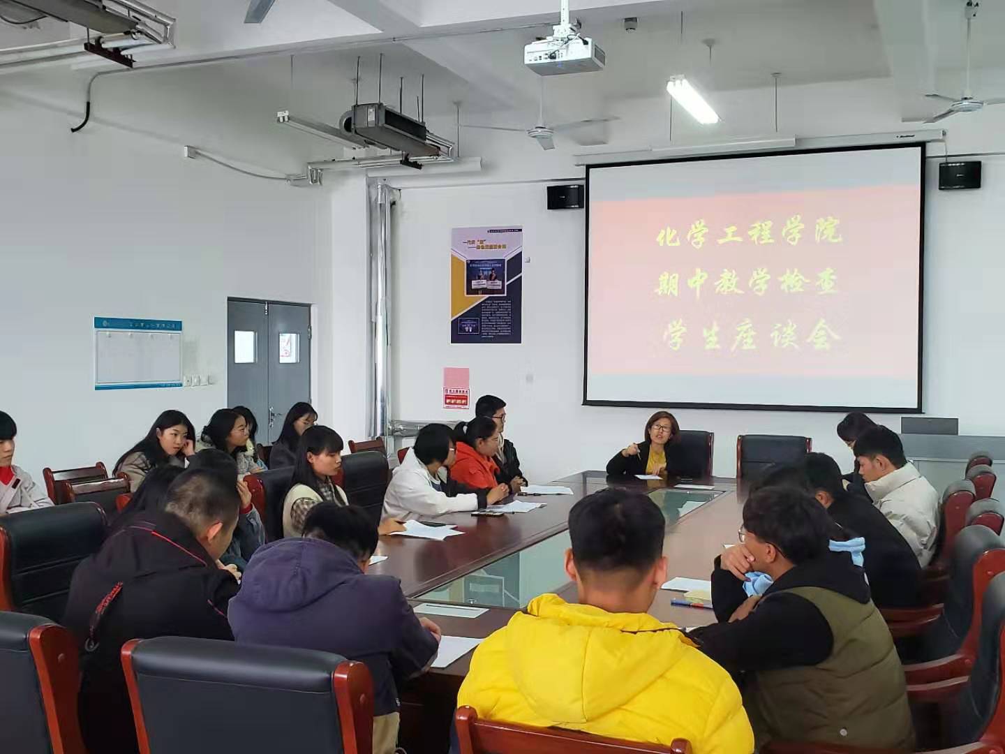 根据化学工程学院《2019-2020学年第一学期期中教学检查实施方案》相关工作安排,为深入了解教学运行情况,及时解决解答学生学习、生活中遇到的问题,化学工程学院于11月7日下午在木泽楼B-207室召开期中教学管理学生座谈会。化学工程学院主管教学副院长、教学管理办公室教师及化学工程学院全体学生代表参加座谈。