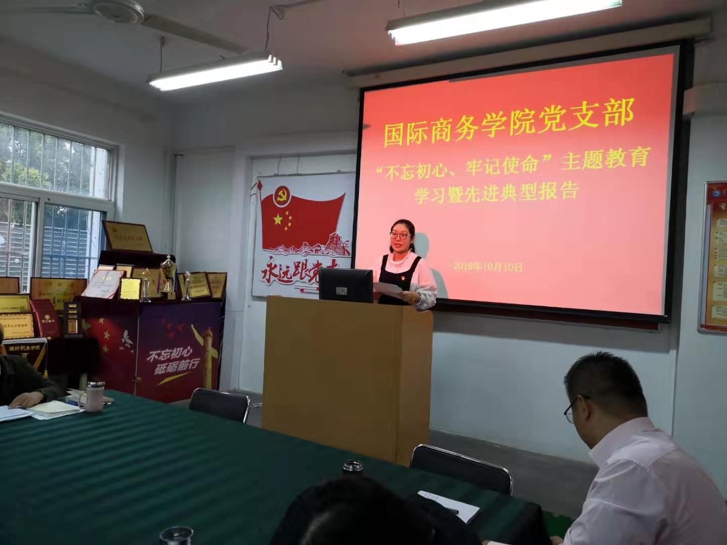 国际商务学院党支部组织开展“不忘初心、牢记使命”主题教育学习暨先进典型报告