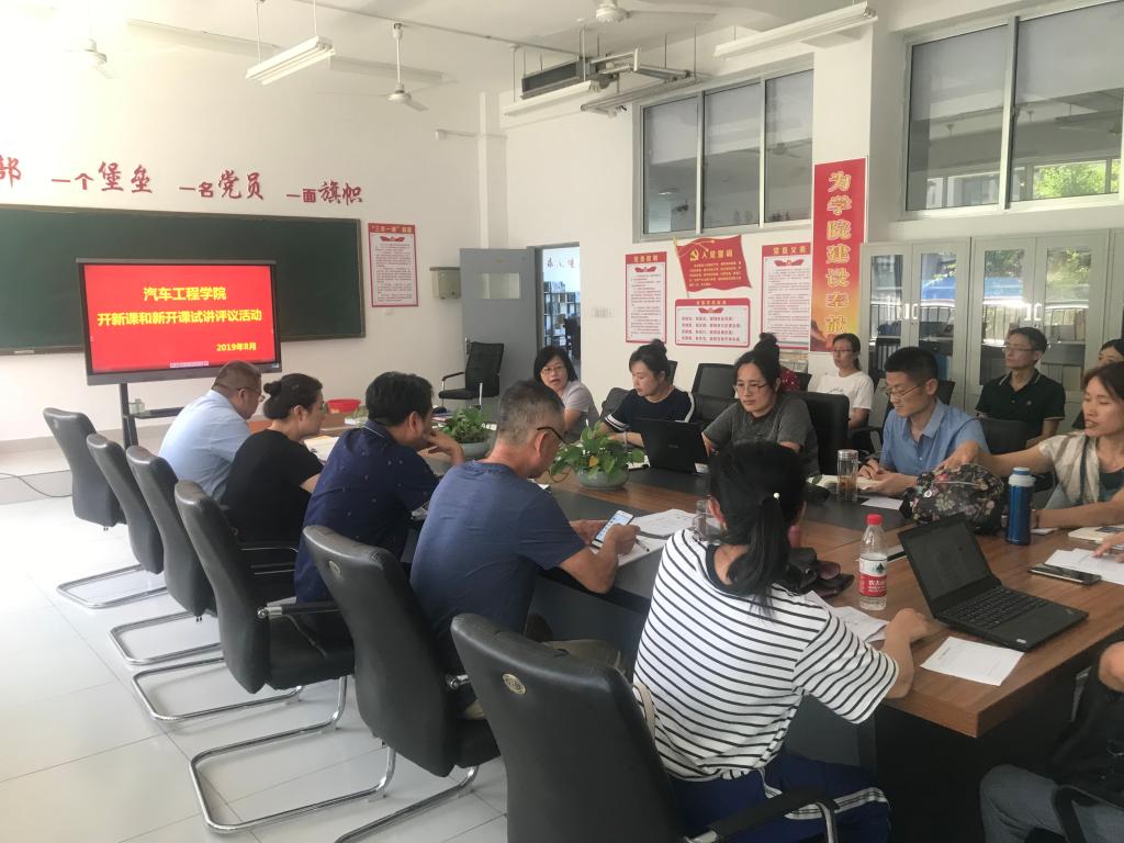 为提升新开课及开新课教师教学水平,促进教师之间交流提升,8月31日上午,汽车工程学院在惠泽2号楼B208教室举办了新开课开新课教师试讲暨评课研课活动,本次活动按照教师试讲、教学反思、评委点评及集体研课四个环节进行,汽车工程学院负责同志及全体教师参加了活动。