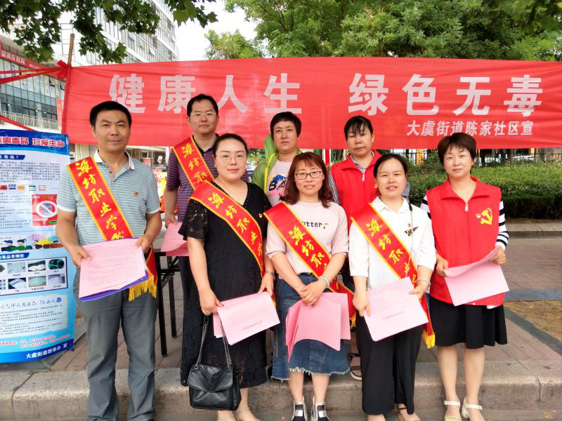 6月26日,国际禁毒日到来之际,办公室党支部、国际商务学院党支部走进大禹街道陈家社区,开展以“健康人生,绿色无毒”为主题的禁毒宣传活动,以服务社区居民志愿活动的形式开展主题党日活动。