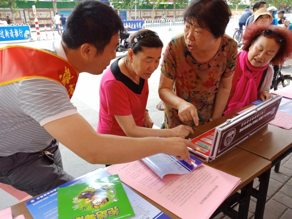 活动现场,在社区党支部的组织带领下,党员同志们扎横幅、竖展板,营造良好的宣传氛围,吸引周边群众驻足关注。期间,大家向群众发放了《致全市人民的禁毒倡议书》、《山东省毒品违法犯罪举报奖励办法》等宣传彩页,展示了常见仿真毒品样本。活动中,大家提前准备,互相讨论,以通俗的语言向群众讲解吸食毒品的危害、有效的预防措施,以及与禁毒相关的法律法规,倡议大家养成健康、文明的生活习惯,抵制诱惑、谨慎交友,积极参与禁毒,提高健康生活品质。最后,活动宣传者、群众在“健康人生·绿色无毒”横幅上签名留言。