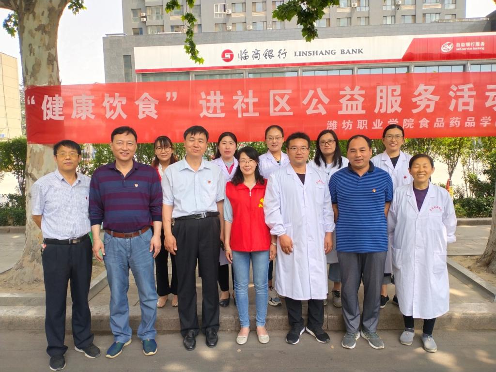 6月1日,食品药品学院组织专业教师在奎文区大虞街道东庄社区开展了“健康饮食”进社区公益服务活动,食品药品学院全体党员和学院食品科技创服务团队、居民膳食营养与安全服务团队、健康你我他等社会服务团队参加了此次活动。