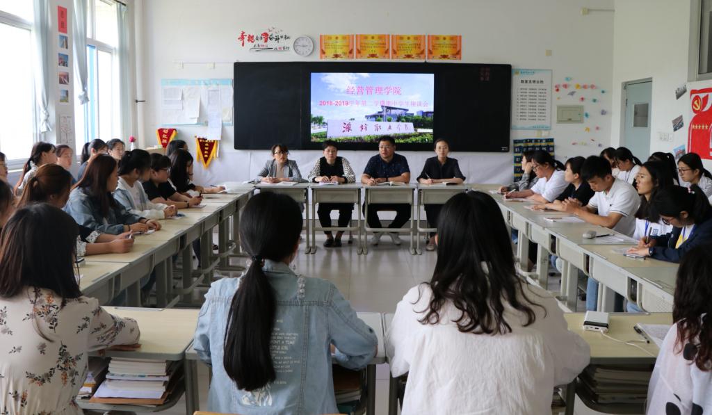 5月27日下午,经营管理学院在惠泽1-A112召开2018~2019学年第二学期期中教学检查学生座谈会,教学管理办公室教师、辅导员办公室(团总支)教师、学生会学习部成员和各班级学习委员代表参加了此次座谈会。