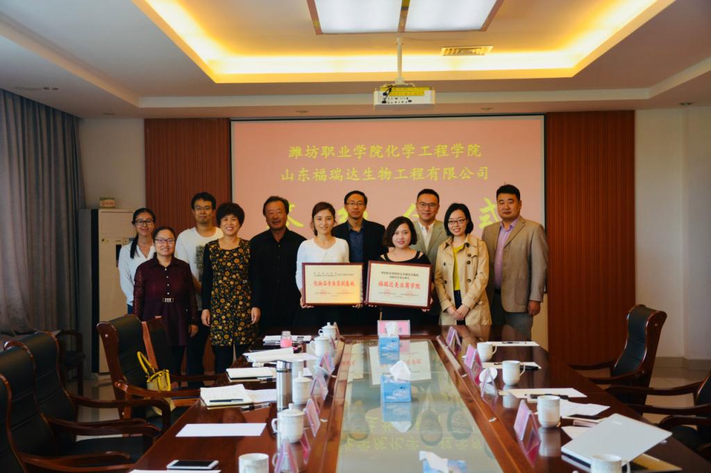 9月28日,化学工程学院与山东福瑞达生物工程有限公司校企共建“化妆品专业实训基地——福瑞达美业商学院”项目举行签约仪式。化学工程学院主要负责人、化妆品专业教师、产学合作办公室、教学管理办公室等相关人员参加签约仪式。