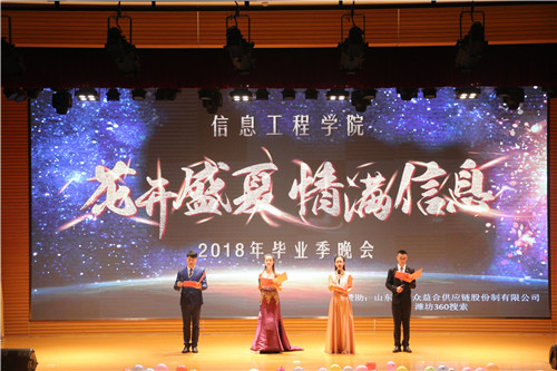 7月3日晚,信息工程学院在图书馆报告厅举办了2018年“花开盛夏,情满信息”毕业季晚会,信息工程学院部门负责人、辅导员班主任老师与2016级学生共同观看了演出。信息工程学院校企合作单位山东智炎众益合供应链股份有限公司和潍坊360搜索也参加了本次活动。