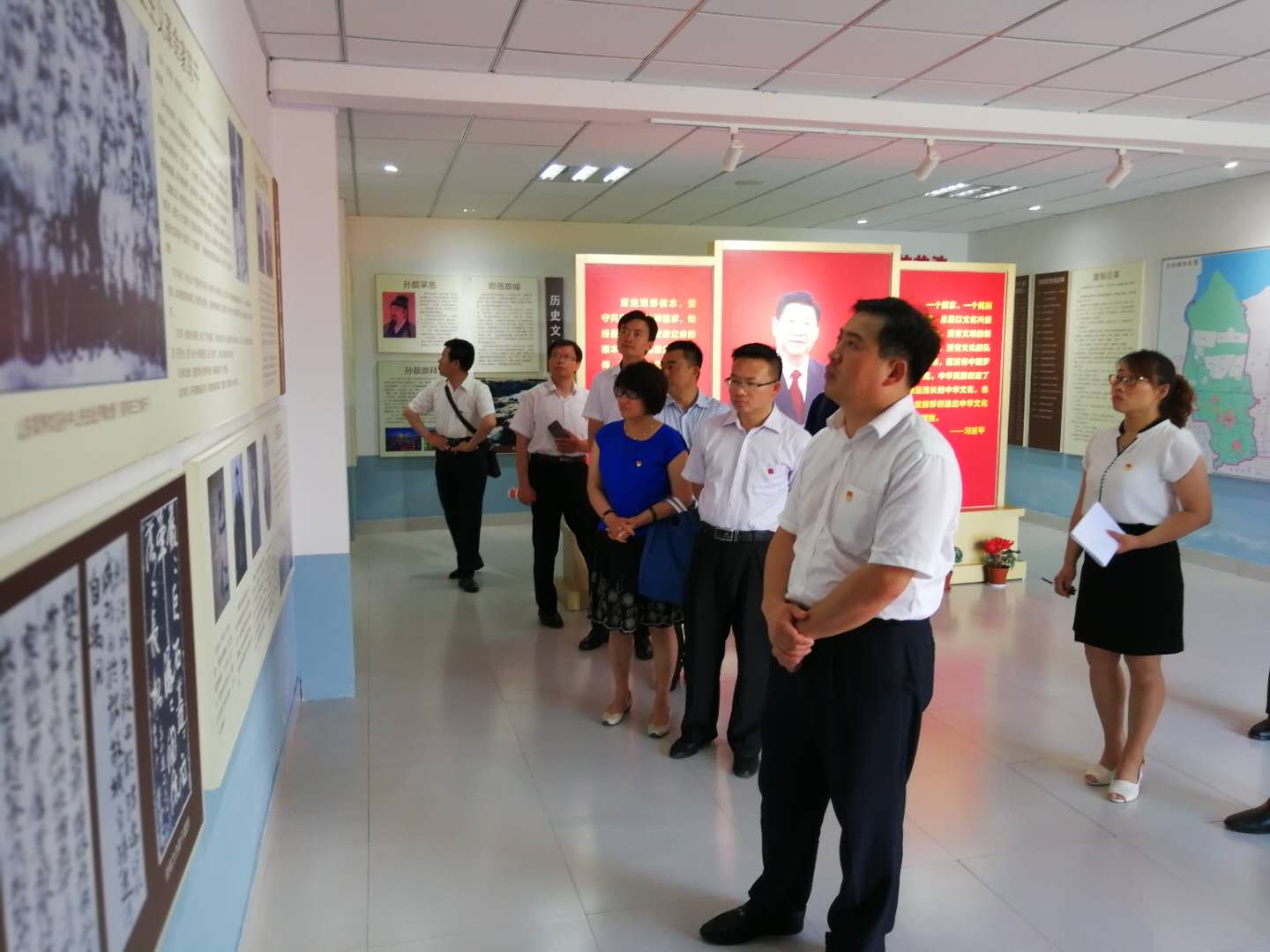 全体同志首先参观了昌邑县抗日殉国烈士祠。退伍老兵、烈士祠守护人、昌邑市优秀共产党员魏铁良老人介绍了烈士祠建立的背景,讲述了抗日战争时期昌潍大地上抗日军民英勇顽强斗争、革命先烈为民族独立解放英勇牺牲的事迹,勉励大家弘扬先烈英雄的爱国精神、大无畏的奉献精神,在自己的岗位上努力工作,为实现伟大的中国梦不懈努力奋斗。全体同志在烈士祠正厅前三鞠躬,向革命先烈致以崇高的敬意。在支部书记谭明同志带领下,同志们面对党旗庄严宣誓,重温入党誓词。随后,全体同志参观了龙池红色文化展览中心——全武收藏博物馆。全面地了解了龙池历史文化、时代变革和龙池人民奋发向上的精神风貌。同志们深切感受到在党的领导下,社会建设、人民生活发生的翻天覆地的变化;坚信只要坚持中国共产党的领导,一定能实现中华民族的伟大复兴;要实现中华民族的伟大复兴,需要全体人民的共同努力和奋斗。