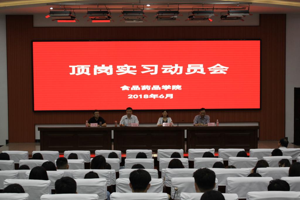 为进一步做好顶岗实习工作,6月13日晚,食品药品学院在滨海校区清泽楼报告厅召开2016级学生顶岗实习动员大会。食品药品学院领导班子、教研室主任、骨干教师、辅导员(班主任)以及全体2016级学生参加了大会。